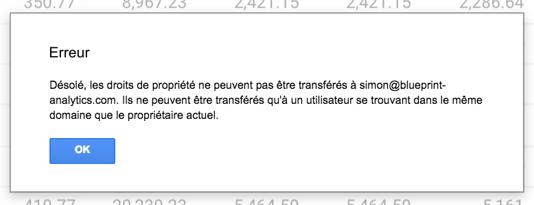 - Je peux aussi commencer le projet en travaillant directement depuis mon propre compte Gmail. Dans ce cas le client doit aussi m’ouvrir les accès aux sources que je vais intégrer dans le rapport. Une fois le dashboard terminé je ne peux pas directement le transférer au client. Il pourra toujours avoir accès à ce dernier, mais n’en sera pas le propriétaire.
