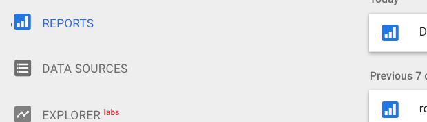 - S’assurer d’avoir accès au tableau de bord et à la source. Ces derniers, s’ils ont bien été partagés, seront visibles dans les sections ‘reports’ et ‘data sources’ accessibles depuis l’interface principale de Google Data Studio.